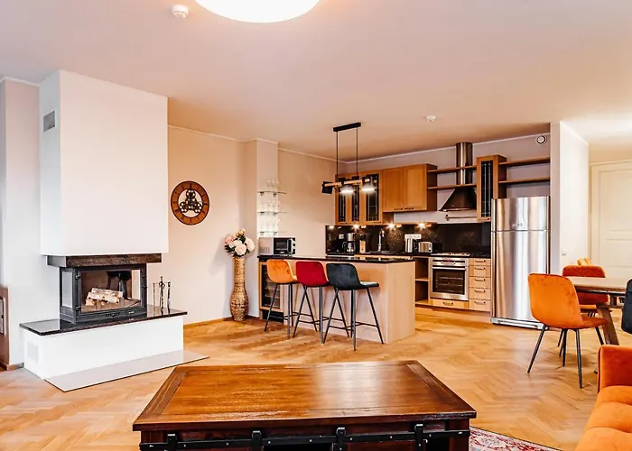 Airhome - Sulevimagi Apartment heeft een balkon, een terras en een zitruimte en is ingericht een stenen open haard en geluiddichte ramen, evenals een bank en een bureau. Dit appartement is ook uitgerust met een flatscreen TV met satellietzenders, en veiligheidsvoorzieningen zoals rookmelders. Deze accommodatie verwelkomt z'n bezoekers in 3 slaapkamers. Het appartement biedt 1 badkamer met een inloopdouche, een apart toilet en een badkuip, plus een haardroger en badlakens.